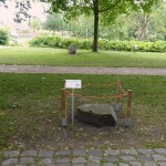 Ein Begrenzungsstein der Zufahrt bildet das Zentrum des ca. 1m x 1m großen eingezäunten Bezirks.